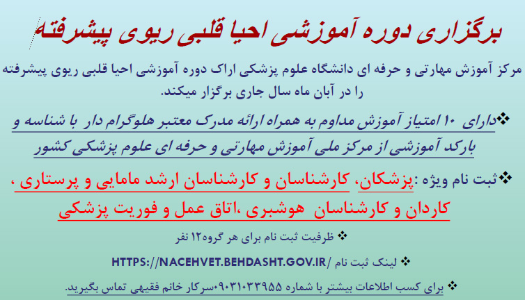اطلاعیه برگزاری دوره آموزشی احیا قلبی ریوی پیشرفته ۰۸ مهر ۱۴۰۲ | ۱۰:۲۰ کد : ۳۷۹۸۷ اطلاعیه ارسال به دیگران نام شما ایمیل شما ایمیل دریافتکننده ارسال انصراف تعداد بازدید:۱۷۵۶۹