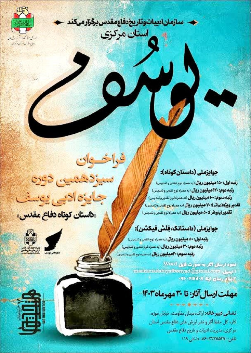 جایزه ادبی یوسف ( داستان کوتاه دفاع مقدس و مقاومت ) را برگزار می نماید.