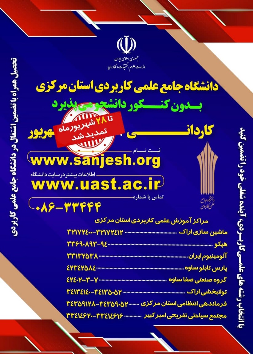 کلیدواژه‌ها: پذیرش کاردانی دانشگاه جامع علمی کاربردی دانشگاه علوم پزشکی اراک تمدید ثبت نام کاردانی ناپیوسته