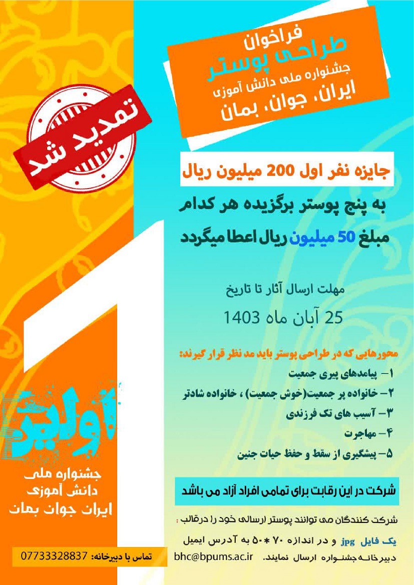 تمدید مهلت فراخوان طراحی پوستر اولین جشنواره ملی دانش آموزی" ایران جوان بمان "