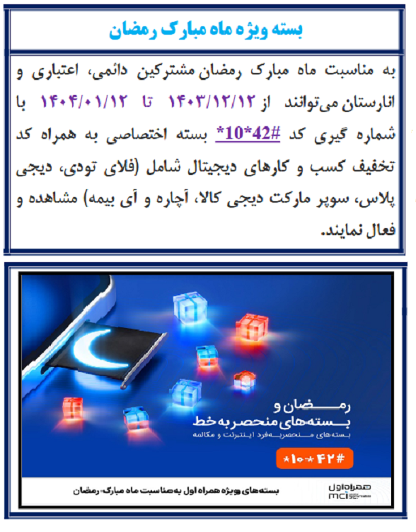 بسته ویژه ماه مبارک رمضان ۱۳ اسفند ۱۴۰۳ | ۰۹:۳۰ کد : ۴۹۹۵۸ اطلاعیه ارسال به دیگران نام شما ایمیل شما ایمیل دریافتکننده ارسال انصراف تعداد بازدید:۶۷۸۹ بسته ویژه ماه مبارک رمضان