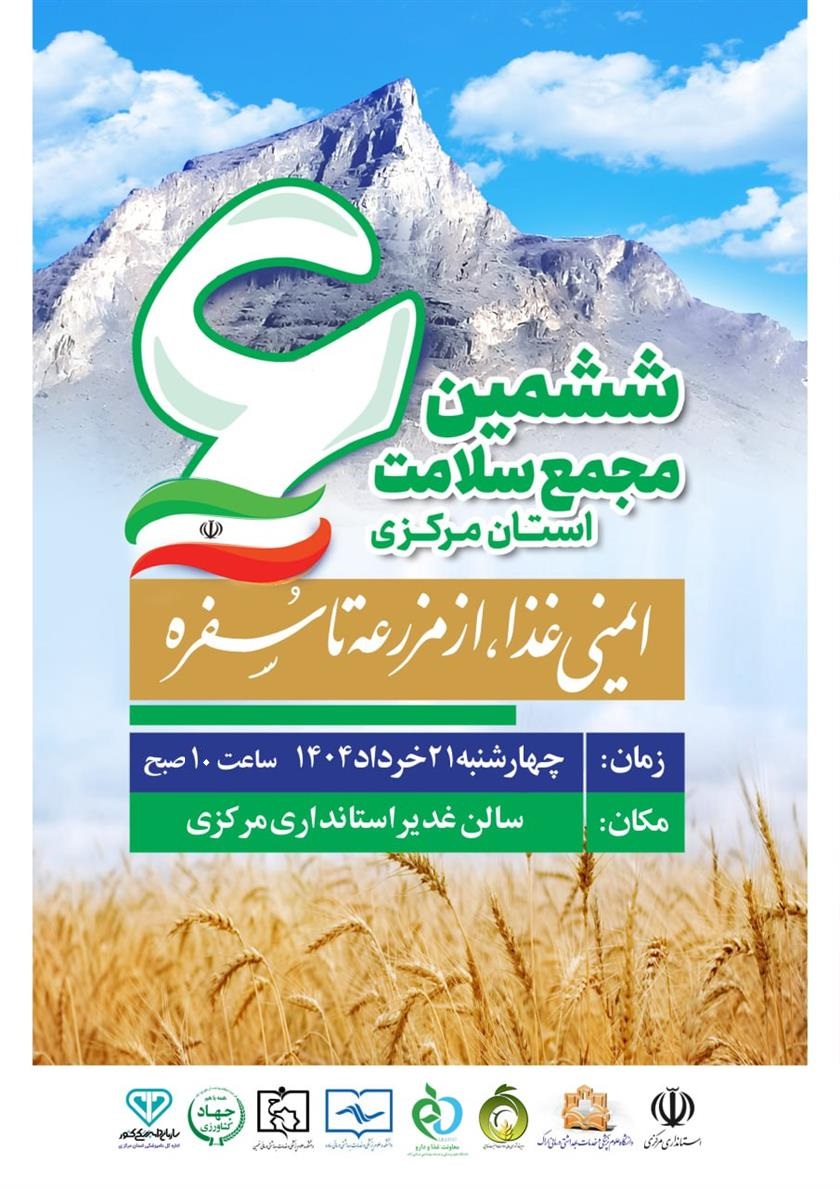 ششمین مجمع سلامت استان مرکزی در تاریخ 21 / 03 / 1404 با گفتمان ایمنی غذا ، از مزرعه تا سفره، واقع در سالن غدیر استانداری مرکزی برگزار می گردد.