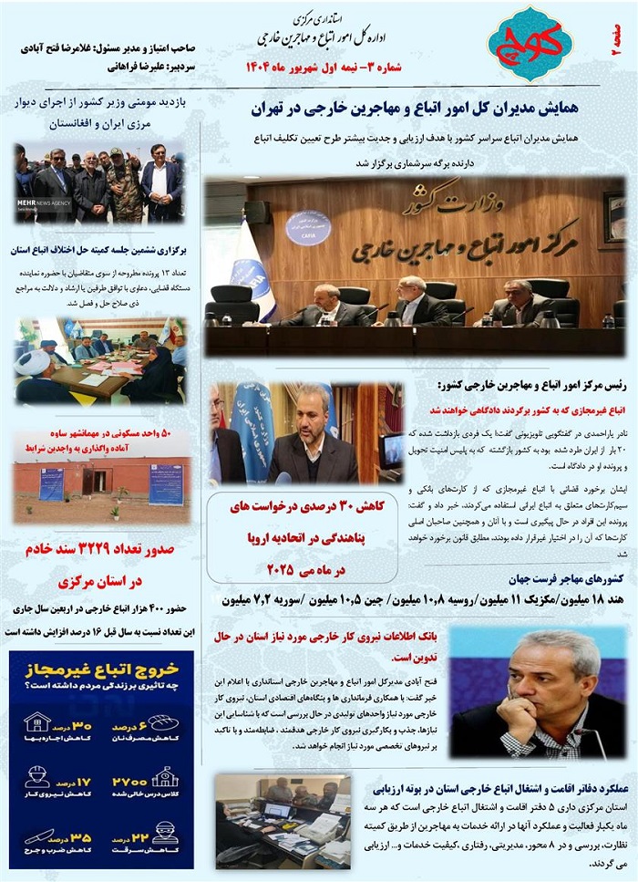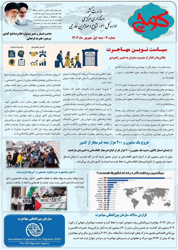 سومین شماره نشریه کوچ، توسط دفتر امور اتباع و مهاجرین خارجی استان مرکزی منتشر گردید.