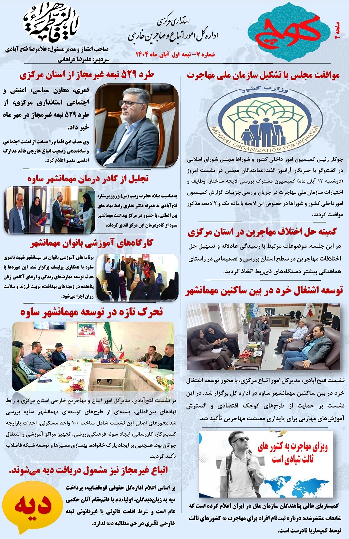 اخبار و رویدادهای حوزه مهاجرت در استان مرکزی