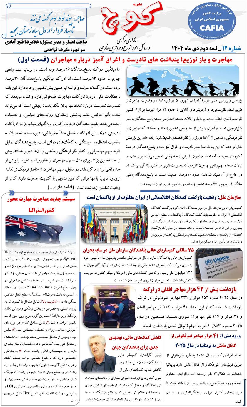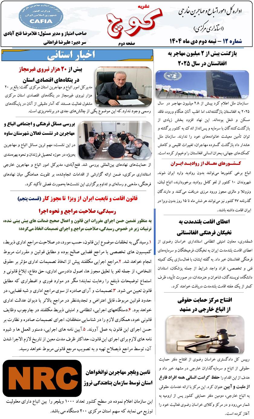 دوازدهممین شماره نشریه کوچ، توسط دفتر امور اتباع و مهاجرین خارجی استان مرکزی منتشر گردید.